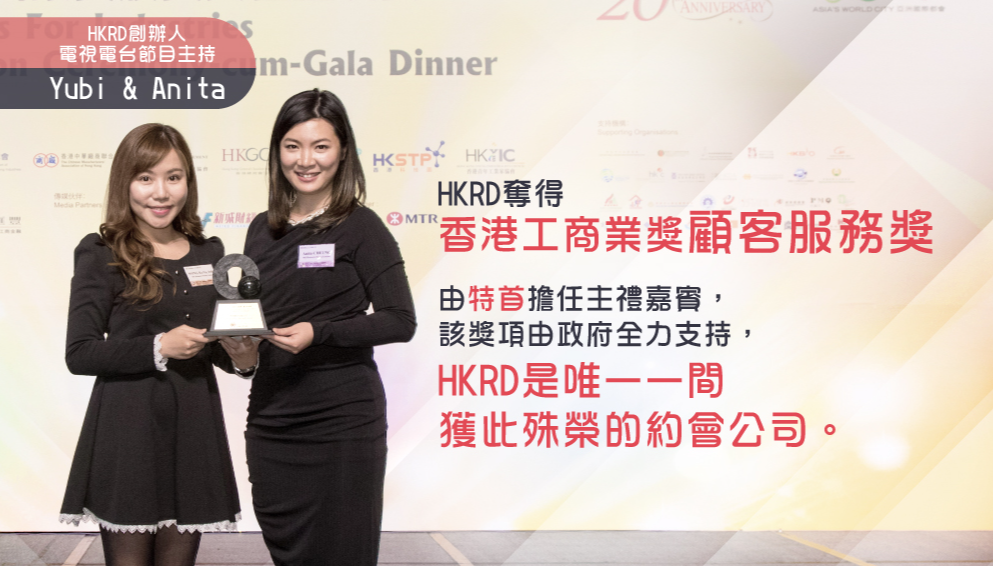 HKRD成立10余年,拥有约4万登记会员及500次媒体采访,并获得工业贸易署支持的「香港工商业奖 – 顾客服务奖」,是全港唯一一间获此殊荣的交友约会公司。